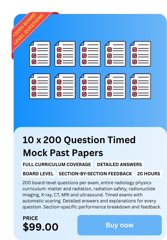 •  Timed, realistic, board-level practice exams covering the entire radiology physics curriculum